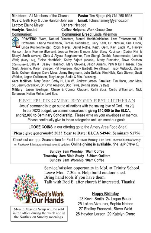 Bulletin: August 3, 2025Congregational Update: August 1, 2025Bulletin: August 10, 2025Congregational Update: August 8, 2025Bulletin: August 17, 2025Congregational Update: August 15, 2025Bulletin: August 24, 2025Congregational Update: August 22, 2025Youth Update August 28, 2025Bulletin: August 31, 2025Congregational Update: August 29, 2025
