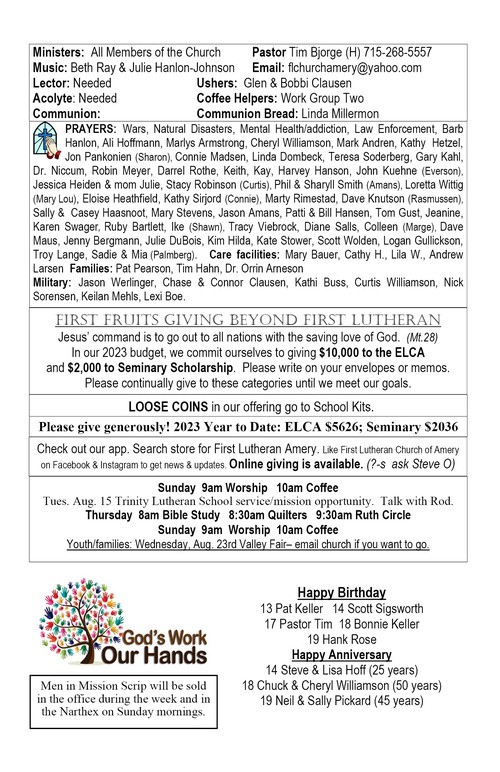 Bulletin: August 3, 2025Congregational Update: August 1, 2025Bulletin: August 10, 2025Congregational Update: August 8, 2025Bulletin: August 17, 2025Congregational Update: August 15, 2025Bulletin: August 24, 2025Congregational Update: August 22, 2025Youth Update August 28, 2025Bulletin: August 31, 2025Congregational Update: August 29, 2025