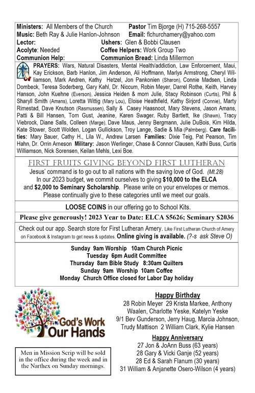 Bulletin: August 3, 2025Congregational Update: August 1, 2025Bulletin: August 10, 2025Congregational Update: August 8, 2025Bulletin: August 17, 2025Congregational Update: August 15, 2025Bulletin: August 24, 2025Congregational Update: August 22, 2025Youth Update August 28, 2025Bulletin: August 31, 2025Congregational Update: August 29, 2025