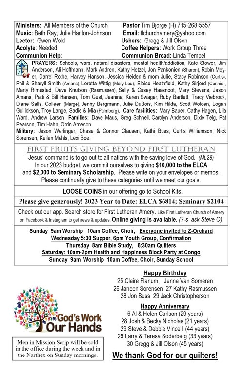 Bulletin: August 3, 2025Congregational Update: August 1, 2025Bulletin: August 10, 2025Congregational Update: August 8, 2025Bulletin: August 17, 2025Congregational Update: August 15, 2025Bulletin: August 24, 2025Congregational Update: August 22, 2025Youth Update August 28, 2025Bulletin: August 31, 2025Congregational Update: August 29, 2025