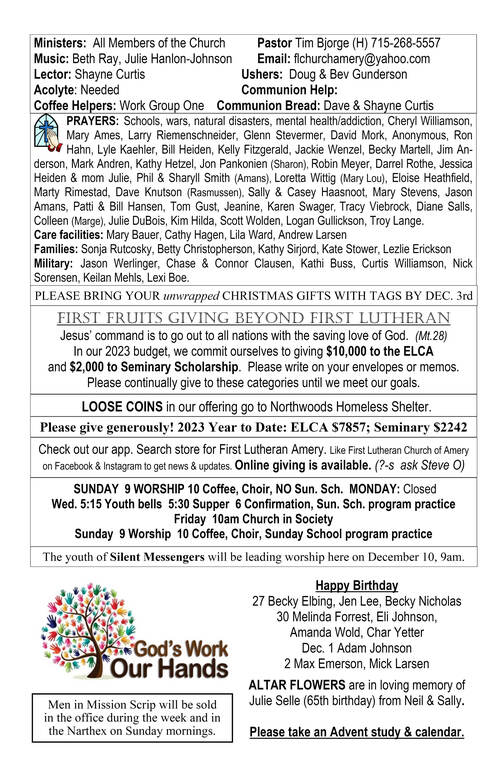 Bulletin: January 5, 2025Congregational Update: 1/3/2025Youth Update 1/3/2025Congregational Update: 1/10/2025Bulletin: January 12, 2025Youth Update 1/10/2025Congregational Update: 1/17/2025Bulletin: January 19, 2025Congregational Update: 1/24/2025Youth Update 1/25/2025Bulletin: January 26, 2025Congregational Update: 1/31/2025Bulletin: February 2, 2025