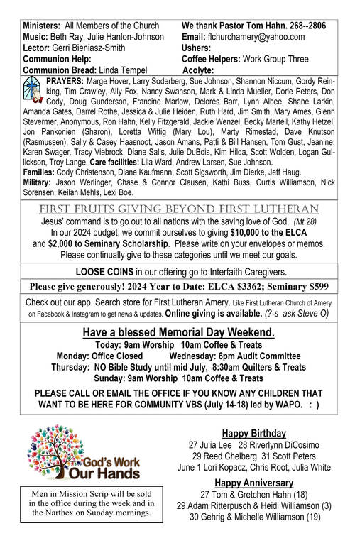 Congregational Update: May 2, 2025Bulletin: May 4, 2025Congregational Update: May 9, 2025Bulletin: May 11, 2025Congregational Update: May 16, 2025Bulletin: May 18, 2025 Graduation SundayYouth Update 5/21/2025 VBSCongregational Update: May 23, 2025Bulletin: May 25, 2025Congregational Update: May 30, 2025Bulletin: June 1, 2025