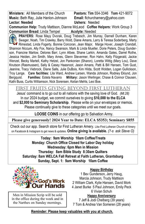 Bulletin: August 3, 2025Congregational Update: August 1, 2025Bulletin: August 10, 2025Congregational Update: August 8, 2025Bulletin: August 17, 2025Congregational Update: August 15, 2025Bulletin: August 24, 2025Congregational Update: August 22, 2025Youth Update August 28, 2025Bulletin: August 31, 2025Congregational Update: August 29, 2025