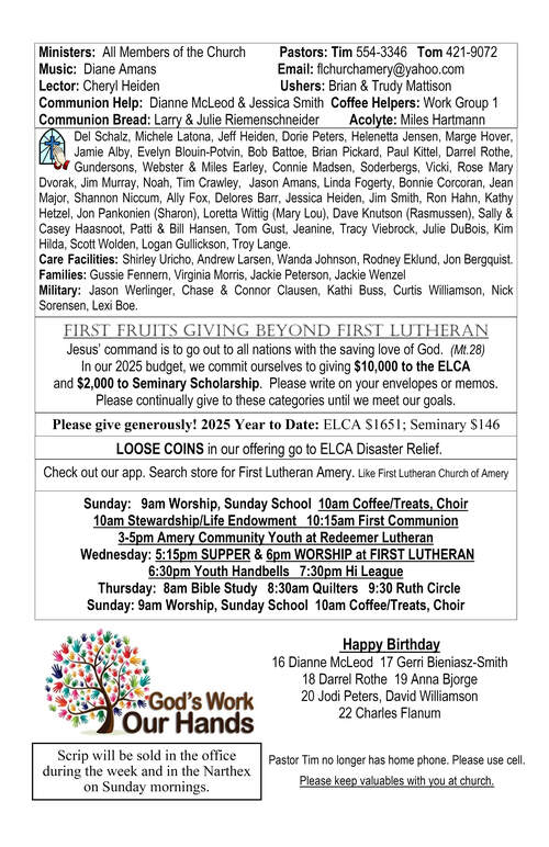 Bulletin: August 3, 2025Congregational Update: August 1, 2025Bulletin: August 10, 2025Congregational Update: August 8, 2025Bulletin: August 17, 2025Congregational Update: August 15, 2025Bulletin: August 24, 2025Congregational Update: August 22, 2025Youth Update August 28, 2025Bulletin: August 31, 2025Congregational Update: August 29, 2025