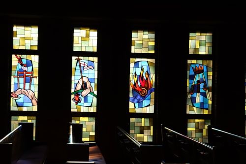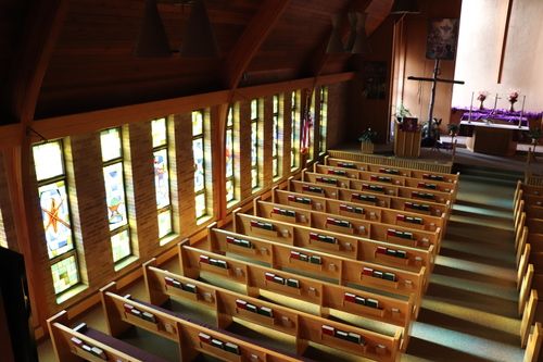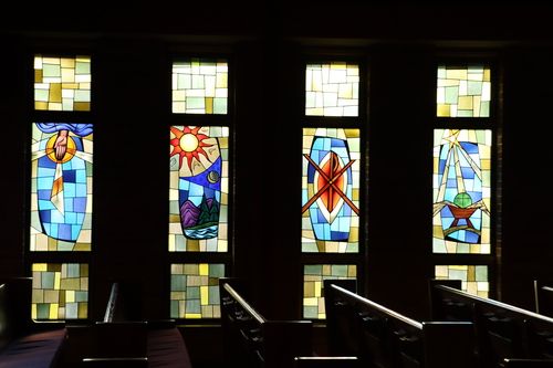 Our unique stained glass windows dress our sanctuary quite beautifully. Each window corresponds with a part of the Apostle's Creed. They were designed, manufactured, and installed by Hauser Studios of Stained Glass, Inc., of Winona Minnesota. Dedicated August 25, 1974. 50th Anniversary Celebration, August 25, 2024.
